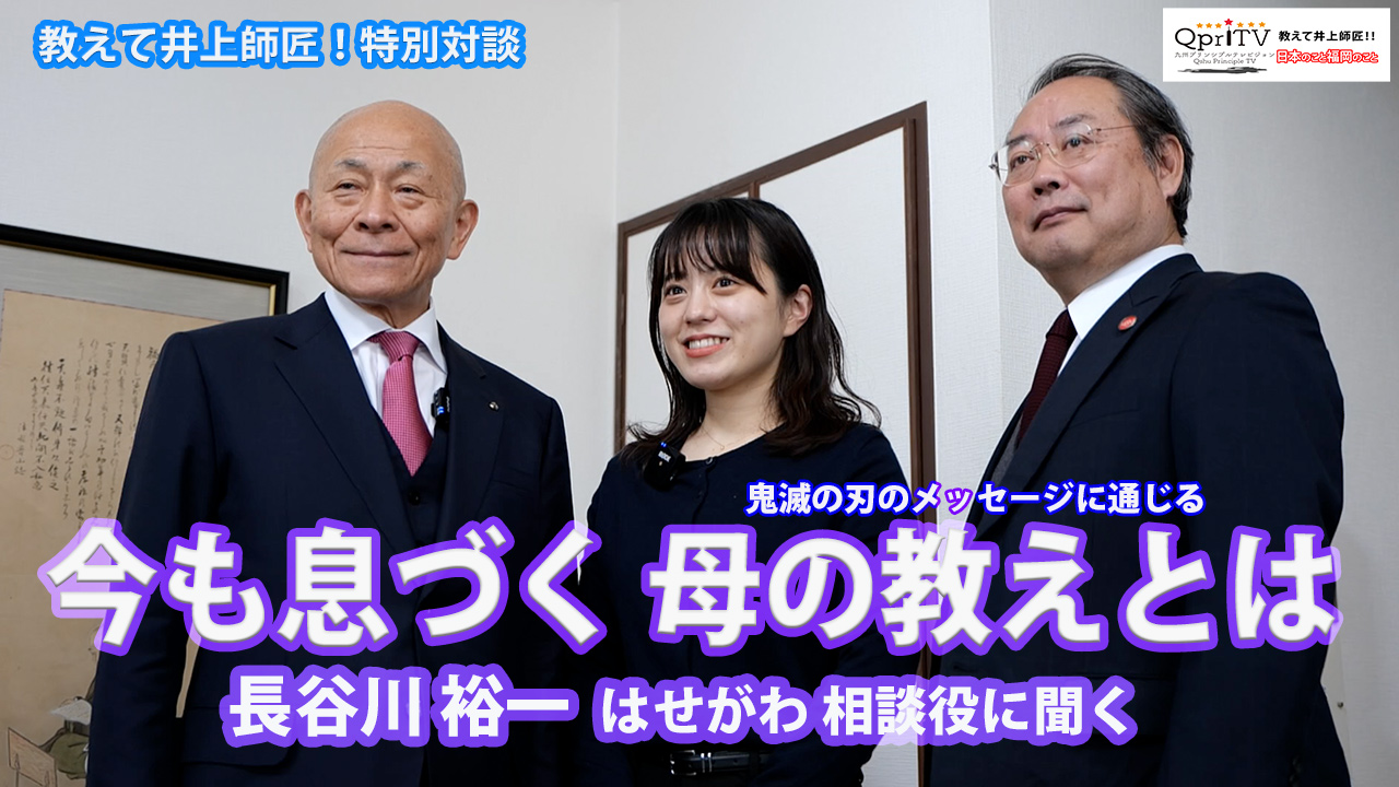 井上師匠スペシャル対談 井上師匠チャンネル 教えて井上師匠!日本のこと 福岡のこと 教えて井上師匠!特別対談 鬼滅の刃に通じる今も息づく母の教えとは 祈りの老舗 長谷川裕一 はせがわ相談役に聞く 2021年2月7日 Facebook Twitter